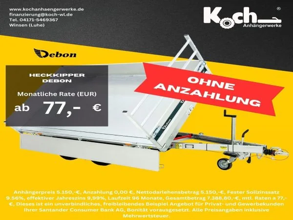 Der Debon Dreiseitenkipper PW2.4E ist ein kompakter und leistungsstarker 3-Seiten-Kippanhänger für Bauunternehmen, Handwerk, Garten- und Landschaftsbau sowie kommunale Einsätze. Mit einem zulässigen Gesamtgewicht von 2.600 kg und einer Nutzlast von ca. 1.920 kg bietet er eine optimale Kombination aus Tragkraft, Funktionalität und Bedienkomfort.