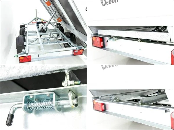Das verzinkte H-Gestell ist montiert und kann bei Bedarf abgenommen werden. Der vorbereitete Rampenschacht erlaubt die optionale Nachrüstung von Auffahrrampen. Das komplett feuerverzinkte Fahrwerk mit Gummifederachse, V-Deichsel und Automatik-Schwerlaststützrad garantiert Langlebigkeit und sichere Fahreigenschaften – auch im harten Arbeitsalltag.
