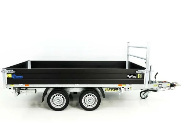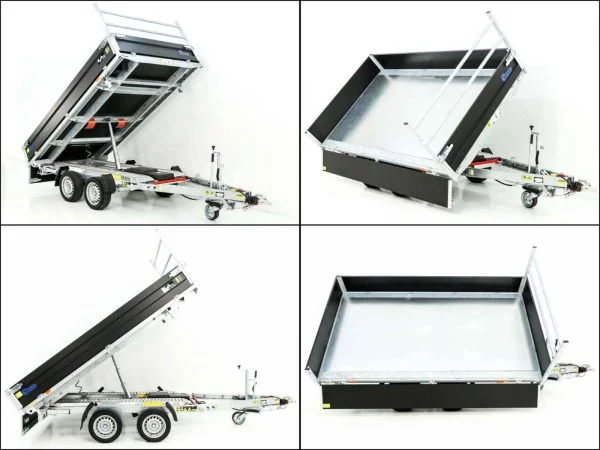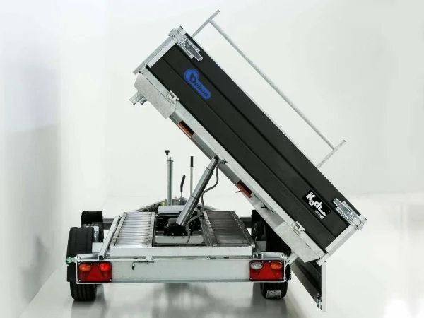 Dank der elektrischen Hydraulikpumpe mit zusätzlicher Not-Handpumpe lässt sich die Ladefläche sicher und komfortabel nach drei Seiten kippen. Die schwarzen Aluminium-Bordwände (350 mm) sind klapp- und abnehmbar und unterstreichen den hochwertigen Black-Edition-Look.