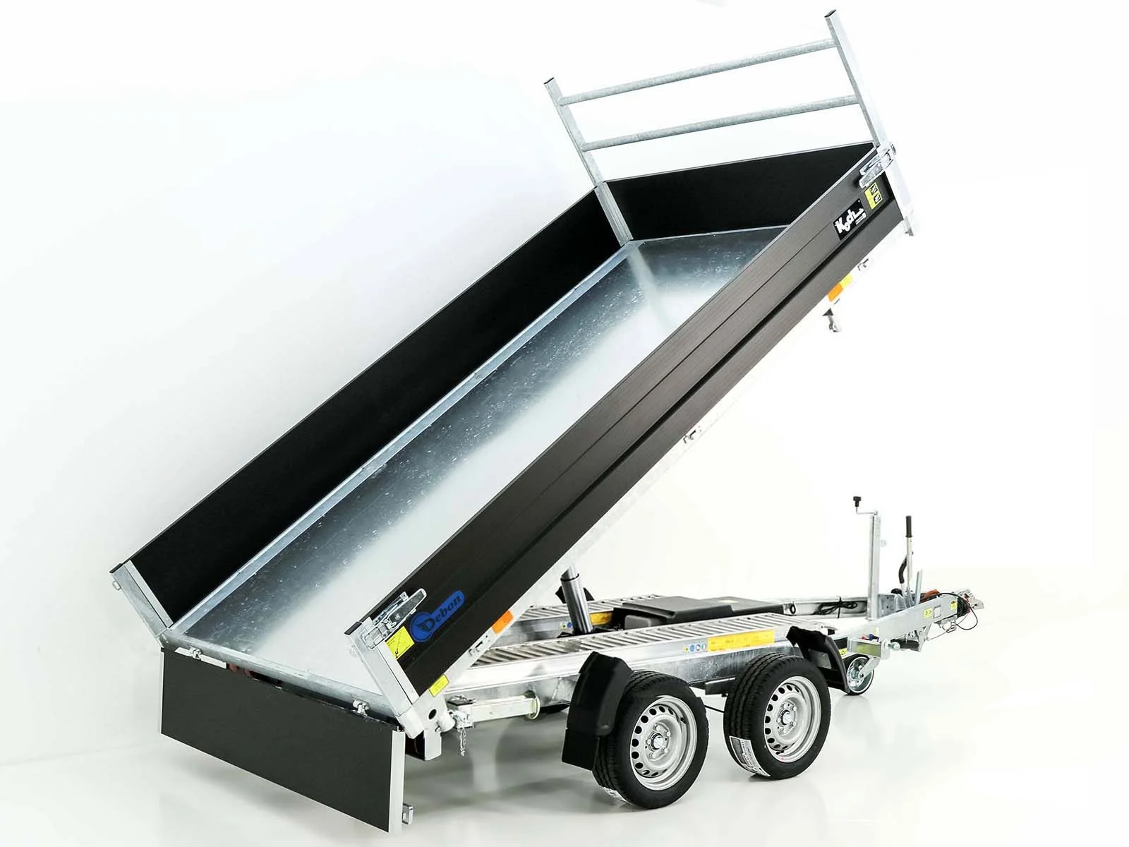 Der Debon Dreiseitenkipper PW3.3E Black Edition ist ein leistungsstarker Profi-Anhänger für Bau, Handwerk und Gewerbe. Mit einem zulässigen Gesamtgewicht von 3.500 kg und einer Nutzlast von ca. 2.700 kg eignet er sich ideal für den Transport von Schüttgut, Maschinen und Baumaterialien.