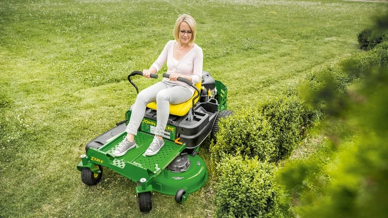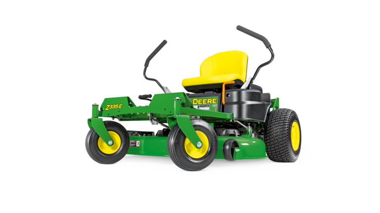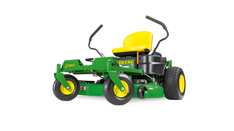 Der John Deere Z335E überzeugt durch Qualität, Zuverlässigkeit und Benutzerfreundlichkeit – ein idealer Einstieg in die Welt der professionellen Null-Wenderadius-Mäher.