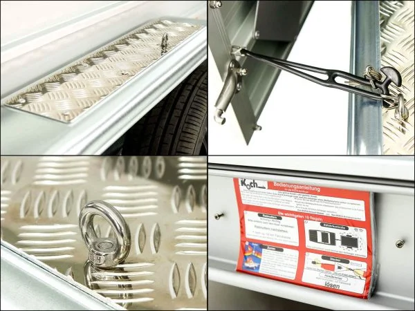 Ein echtes Alleinstellungsmerkmal ist die 10 Jahre Garantie, kombiniert mit zahlreichen einzigartigen Premium-Features: doppelwandige eloxierte Aluminium-Bordwände, durchgängige Bordwandverschraubung aus V2A Edelstahl, integriertes Ladungssicherungssystem, sowie eine dreiseitige Zurrgalerie / Reling.