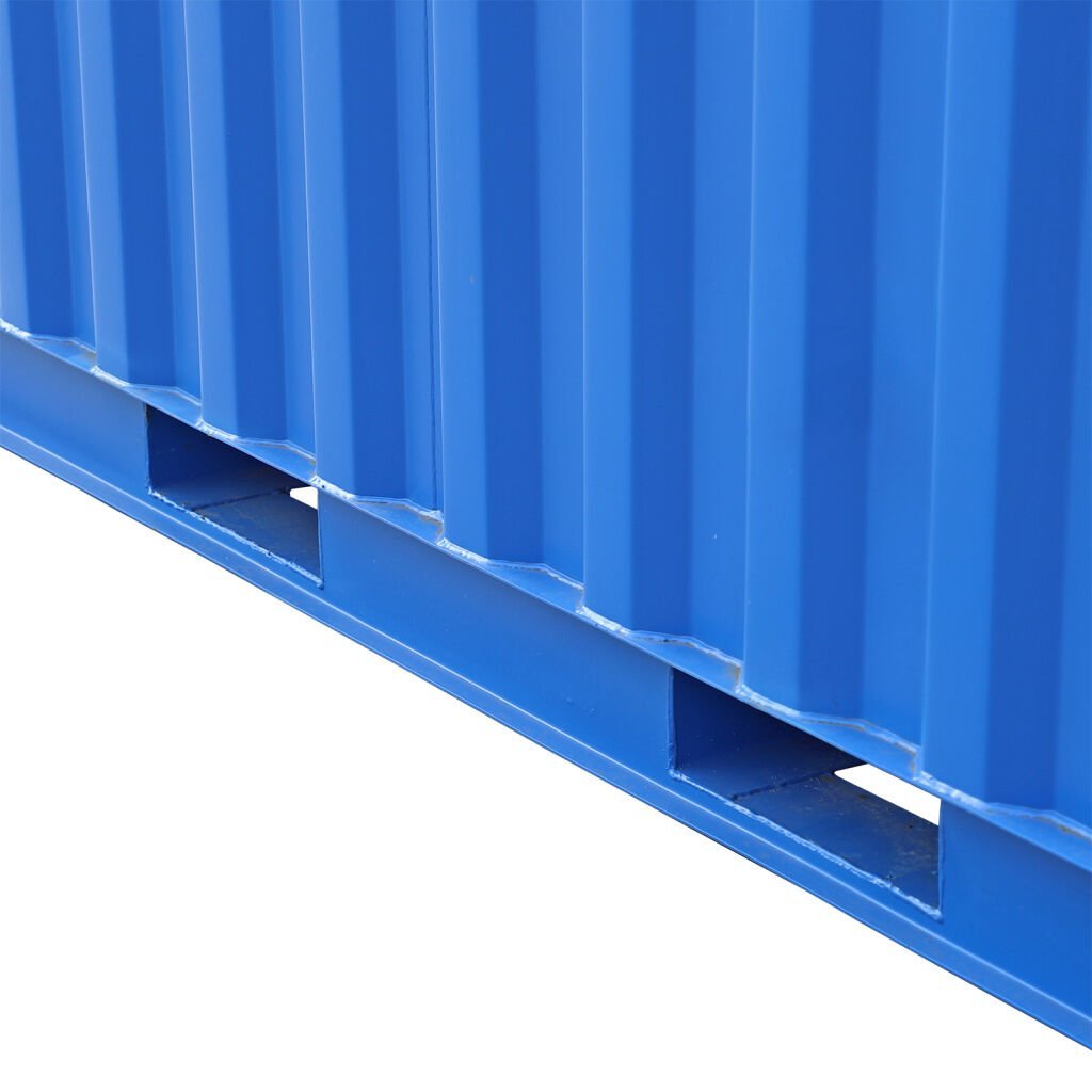 Der Container besteht aus hochfestem Stahl mit profilierter Stahlblechwand, Stahldach und verstärktem Stahlboden. Diese Konstruktion gewährleistet eine lange Lebensdauer sowie eine maximale Tragfähigkeit von bis zu 10.000 kg.