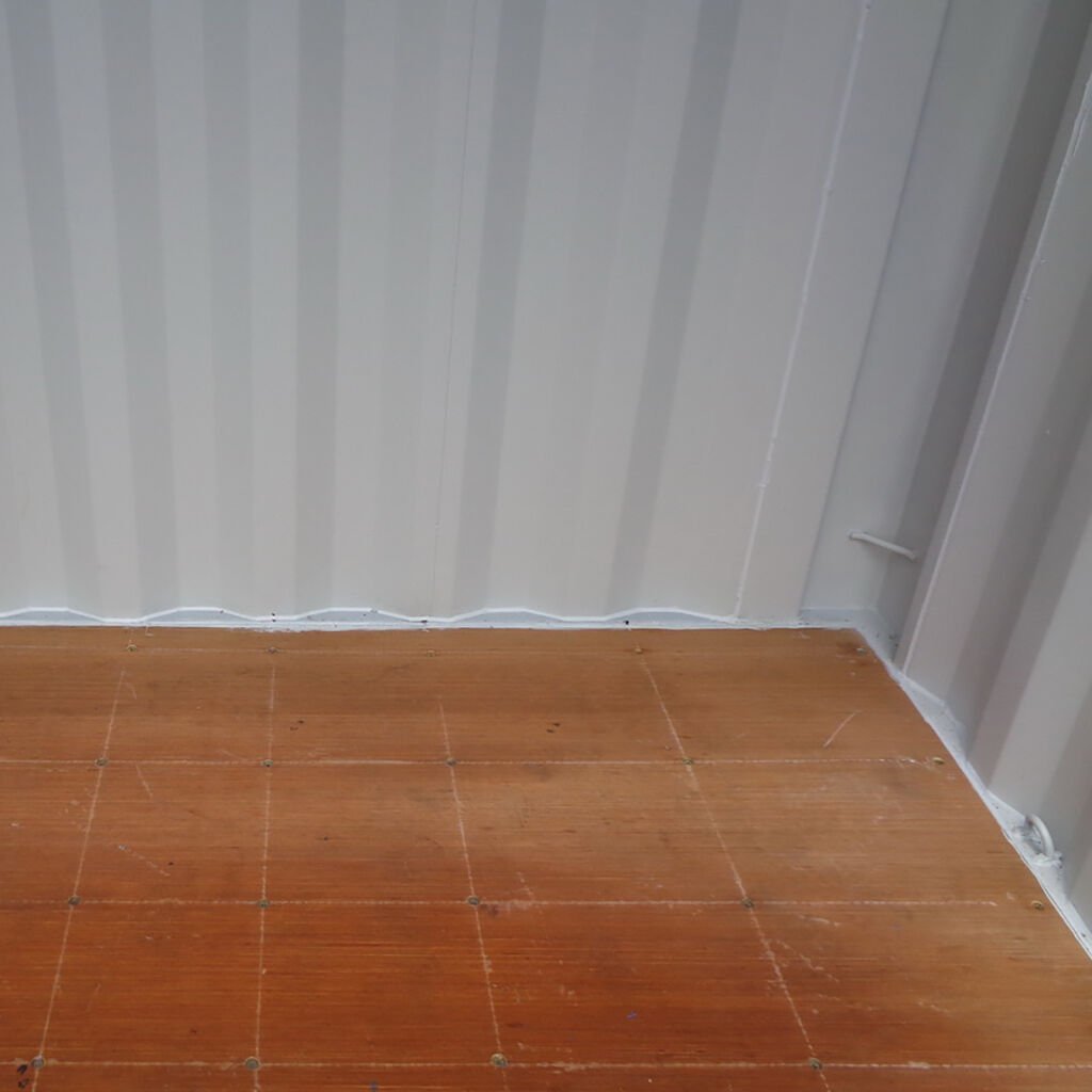 Der Holzboden bietet eine ebene, rutschfeste und belastbare Lagerfläche – ideal für Werkzeuge, Maschinen und Materialien des täglichen Bedarfs.