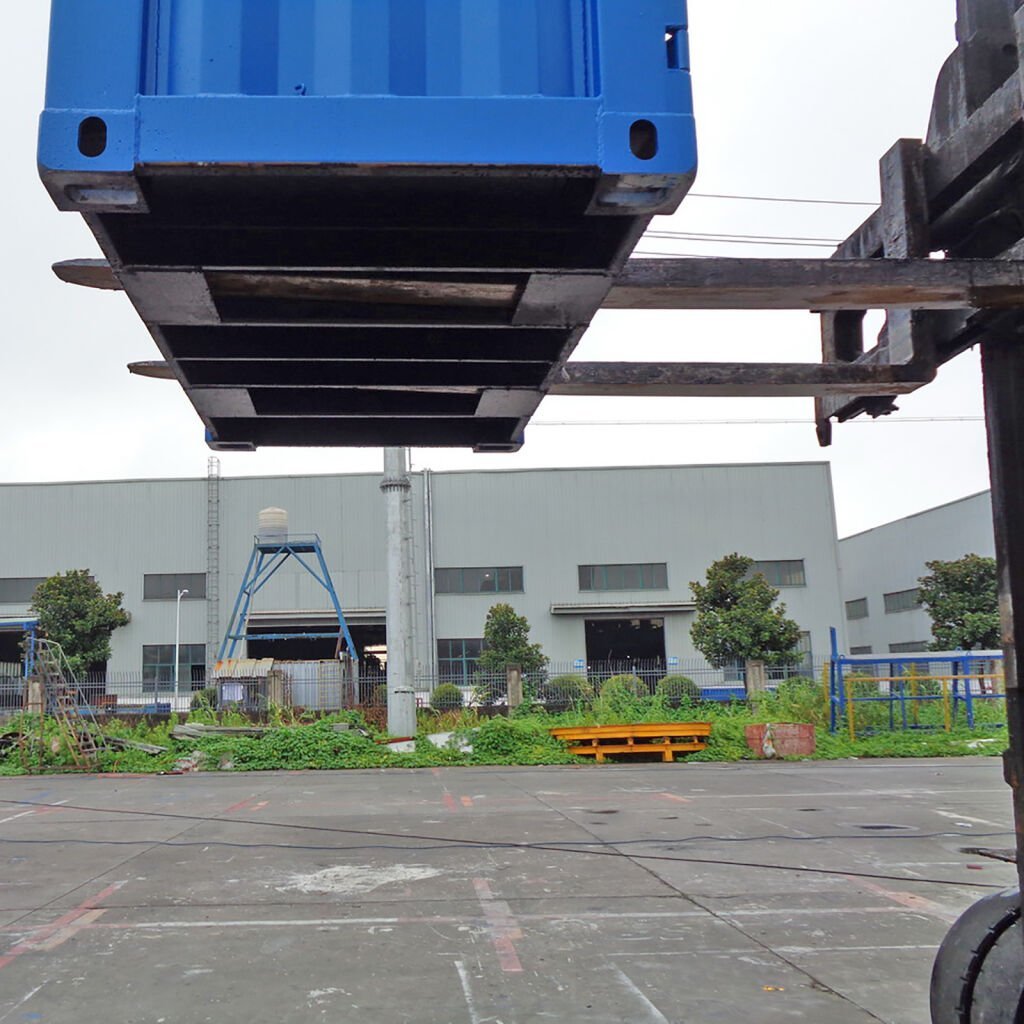 Die aufklappbaren Türen ermöglichen einen schnellen und bequemen Zugriff auf den Innenraum. Dank der beidseitigen Gabelstaplertaschen kann der Container problemlos mit einem Gabelstapler transportiert und flexibel positioniert werden.