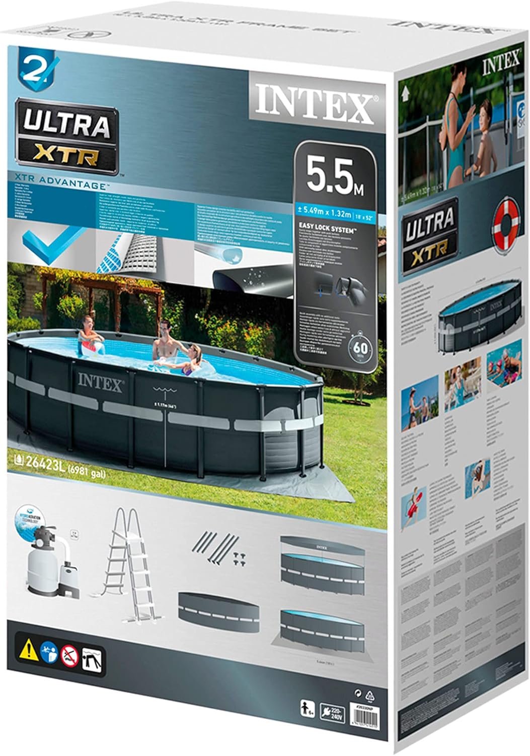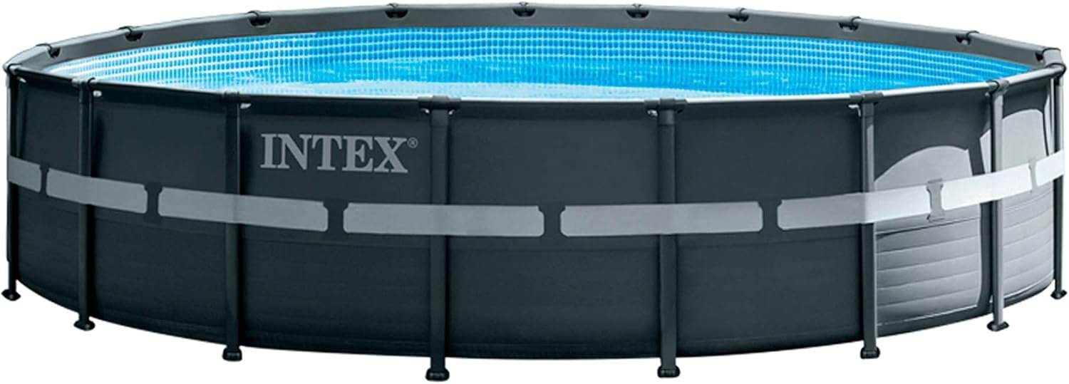 Piscina desmontable redonda Ultra XTR Frame INTEX, las medidas de la piscina son 549×132 cm y su capacidad es de 26 423 litros