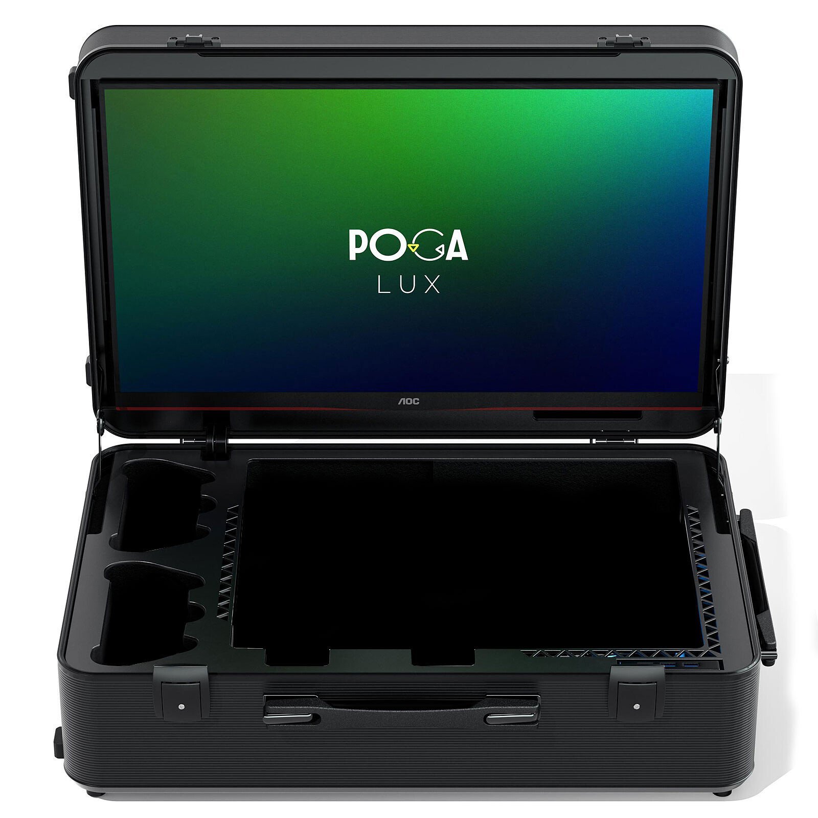 La POGA Lux es una maleta gaming portátil todo en uno con pantalla IPS AOC 24” Full HD 180Hz, FreeSync Premium y altavoces estéreo integrados. Compatible con PlayStation 5, ofrece una solución Plug & Play para jugar en cualquier lugar.