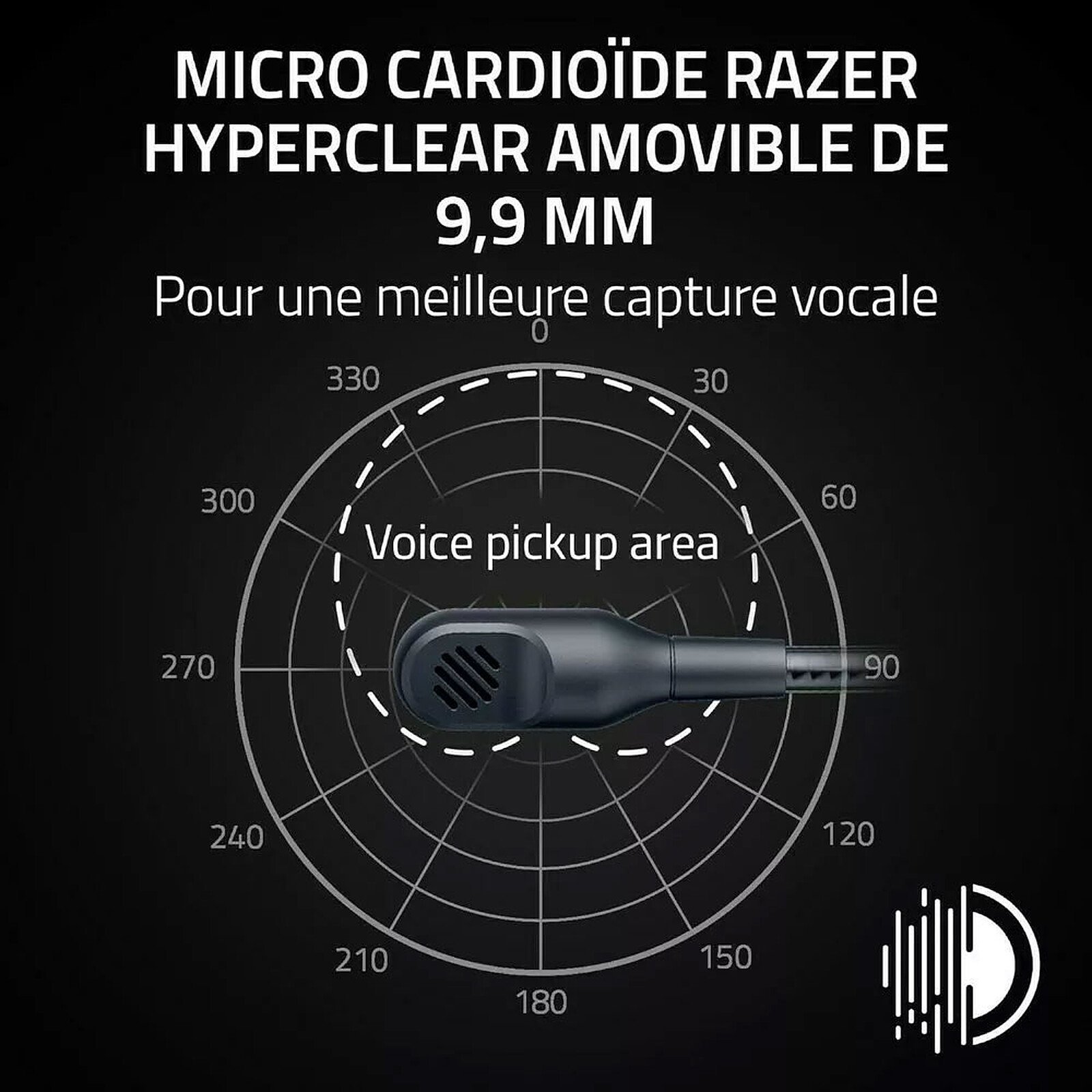 El micrófono HyperClear cardioide extraíble de 9,9 mm capta la voz con gran claridad y reduce el ruido ambiental, ideal para comunicaciones nítidas en partidas competitivas.